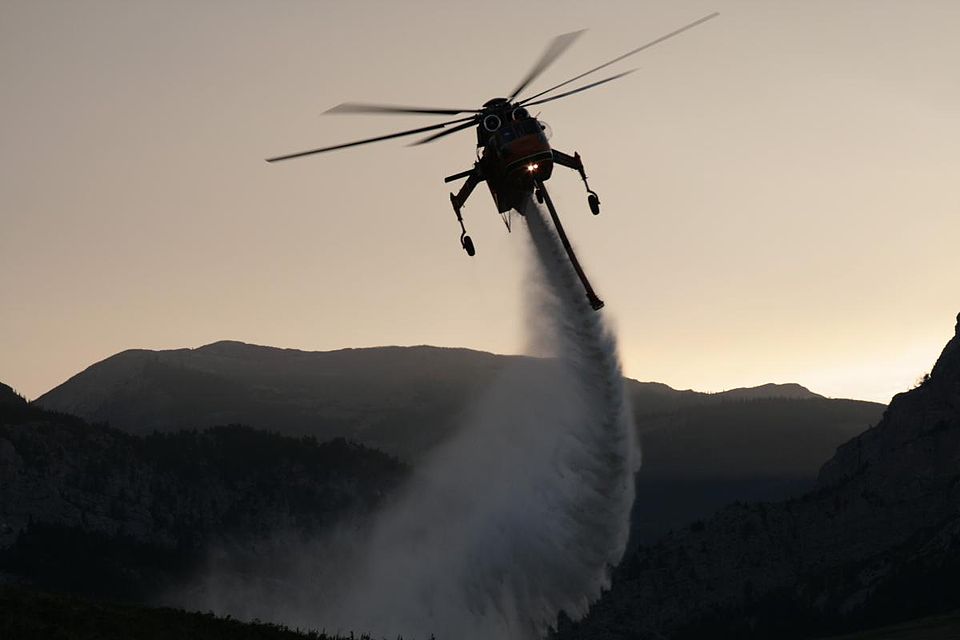 Firefighting Kaman K-Max Water Impact After A Close Pass by a Sikorsky S-64 Skycrane (Precision Lift N171PL)