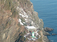 After collecting the technician the helicopter flew c 3NM to a small landing site at Go By Point, at the entrance to Mortier Bay. This site is on steep and rocky terrain next to an AtoN.